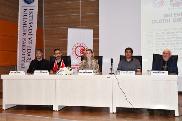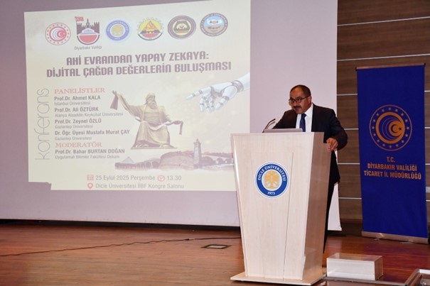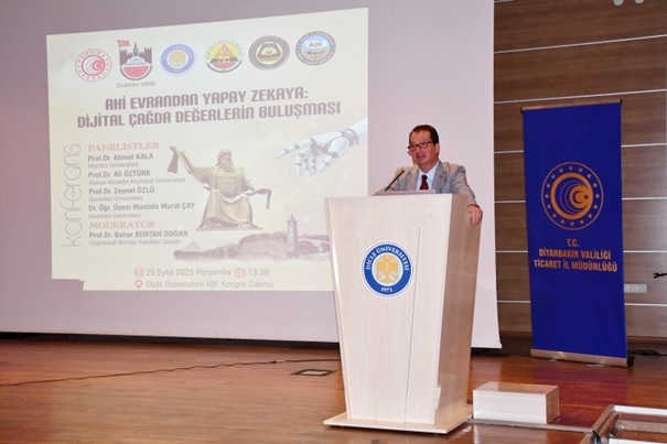 29 Eylül 2025Ahilik Teşkilatının kurucusu Ahi Evran-ı Veli’yi anmak, Ahilik ilkelerini yaşatmak ve tanıtmak amacıyla her yıl düzenlenen Ahilik Haftası etkinlikleri kapsamında “Ahi Evran’dan Yapay Zekaya: Dijital Çağda Değerlerin Buluşması” paneli düzenlendi. İktisadi ve İdari Bilimler Fakültesi Konferans Salonunda gerçekleşen etkinliğe Ticaret İl Müdürümüz Zafer ATİK, Vali Yardımcısı Fatih AYAZ, Dicle Üniversitesi Rektörü Prof. Dr. Kamuran ERONAT, Rektör Yardımcısı Prof. Dr. Aytaç Coşkun, dekanlar, akademisyenler, öğrenciler ve davetliler katıldı.